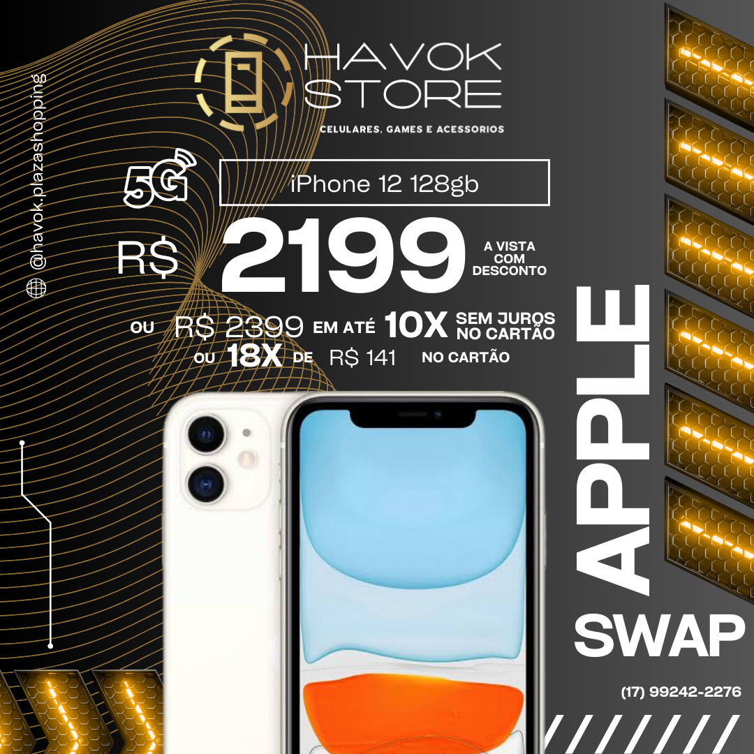 O iPhone 12 traz tela Super Retina XDR OLED de 6,1″, chip A14 Bionic, conectividade 5G, câmera dupla de 12 MP + ultra-wide de 12 MP, corpo leve com proteção IP68 e MagSafe, desempenho e design que duram.