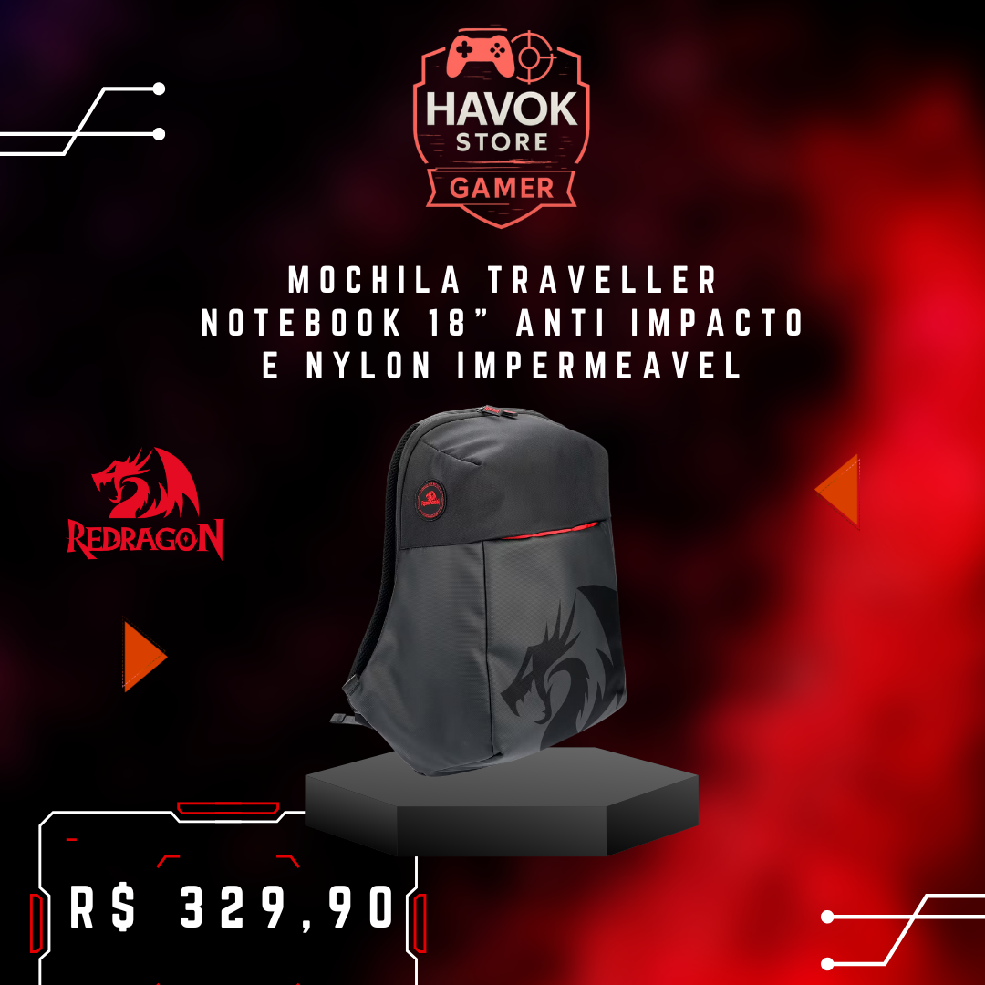 A mochila Traveller da Redragon comporta notebooks de até 18″ com compartimento duplo acolchoado, nylon resistente e acabamento anti-impacto, alças ergonômicas e painéis ventilados, mobilidade e proteção para seu dia ou viagem hoje.