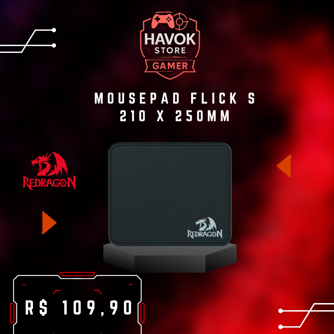 Potencialize seu controle com o Mousepad Flick S 210 × 250 mm: superfície “speed” ultra-macia para movimentos rápidos, base antiderrapante que fixa firme na mesa, bordas costuradas que resistem ao desgaste, pronto para elevar seu jogo hoje.
