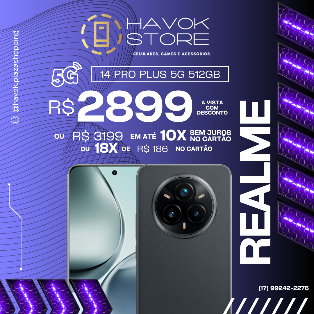 O Redmi Note 14 Pro+ 5G – 512 GB une o processador Snapdragon 7s Gen 3, tela AMOLED curva de 6,67″ com 1.5K e taxa de 120 Hz, câmera principal de 200 MP com OIS, bateria de 5.110 mAh com recarga ultra-rápida de 120 W, desempenho premium e espaço de sobra para seu dia.